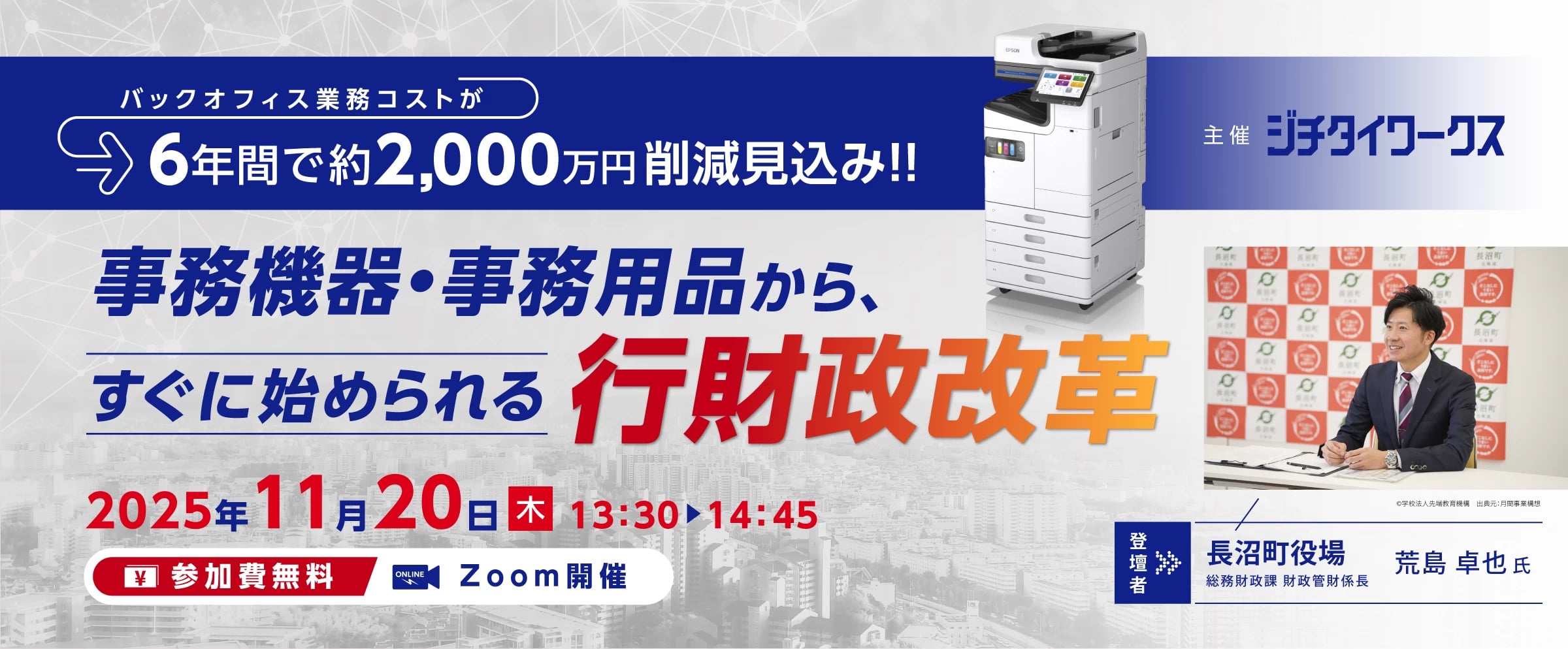 バックオフィス業務コストが6年間で約2,000万円削減見込み!! 事務機器・事務用品から、すぐに始められる行財政改革