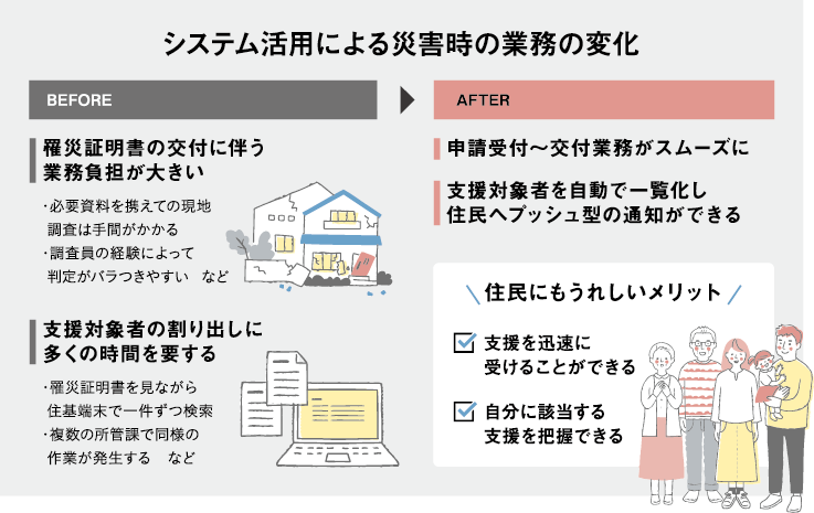 罹災証明書交付の効率化にとどまらず被災者支援全体の迅速化を図りたい。