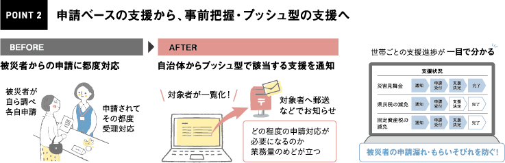 申請を待たずに動ける仕組みで必要な支援を早く届ける。