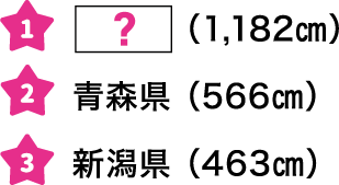以下は最深積雪記録の歴代ベスト3の地点です。1位の地点をもつ都道府県は次のうちどこでしょう。