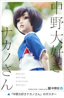 ※「中野大好きナカノさん」 中野区の公式キャラクター。人形作家・清水 真理さんが制作・監修した球体関節人形で、SNSを通じて中野区の日常を発信している。