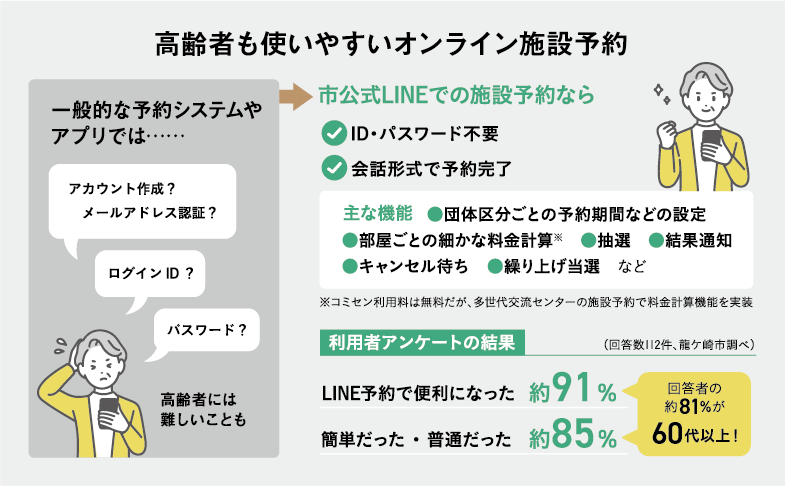 DXで忘れてはならないのが、デジタルデバイドへの対応だ。龍ケ崎市では、高齢者の利用も多いコミュニティセンター(以下、コミセン)の予約にデジタルを活用し、幅広い年齢層から高い満足度が得られているという。