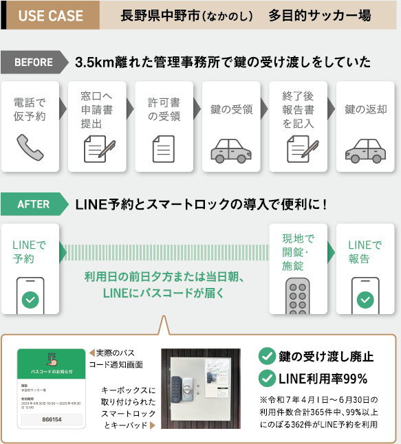 これまでは夜間の予約があると、17時から22時まで管理人が常駐していました。令和7年4月から廃止し、年間約130万円のコスト削減につながっています。利用者からは、“現地へ直接行けるようになり、移動時間の短縮になった”“窓口の営業時間を気にせずに予約やキャンセルができ、すごく利用しやすくなった”との声が届いています。現在、ほかの体育施設にもLINE予約とスマートロックの導入を進めているところです。利便性向上を図り、利用者の増加と満足度向上につなげていきたいですね。