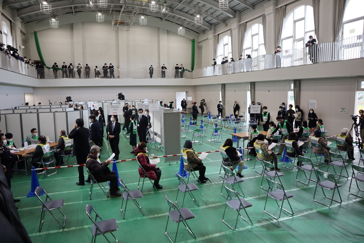 また、場所によって会場の大きさや形が異なるため、全ての集団接種会場が今回の訓練で用いたようなレイアウトになるとは思いませんが、訓練で得られた留意点などをもとに、それぞれの会場に応じた工夫を行っていきたいと考えています。