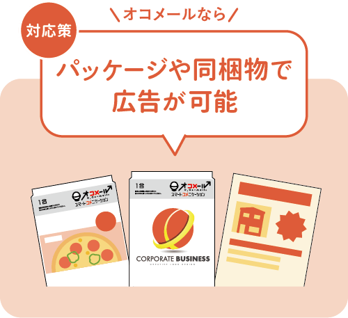 パッケージにスポンサー名やロゴを印刷可能。送る際、企業のチラシやパンフレットも同梱できる。