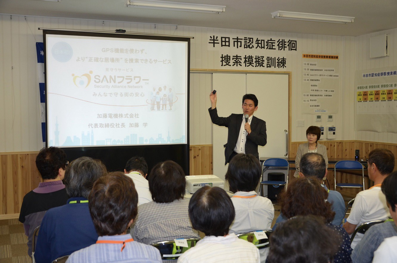 半田市では認知症カフェや行方不明高齢者情報メール配信などを実施し、認知症の方が安心して暮らせるまちづくりを進めています。そこへ、地元企業の加藤電機から「SANフラワー見守りサービス」を紹介されたのです。GPSの欠点をカバーし、高齢者や子どもの居場所がすぐにわかると聞き、開発に関わることになりました。