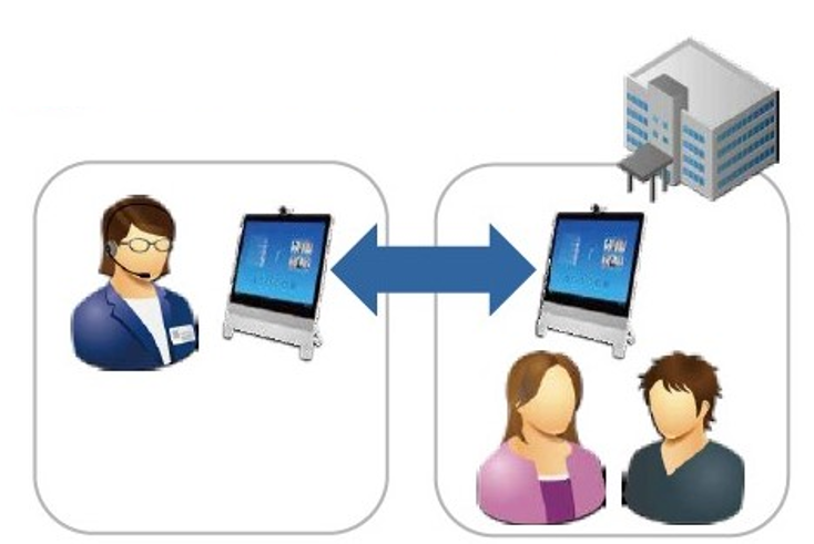 ビデオ通話端末のボタンにタッチすれば手話通訳専門のコールセンターにつながります。