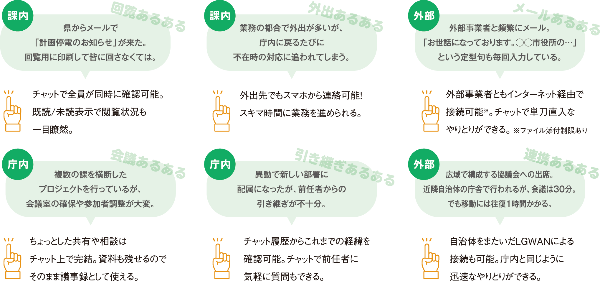 さらに、他自治体とのやりとりができるメリットも大きい。ICT推進室では、LoGoチャット内に「自治体ICTコラボ」というグループを6自治体で作り、LoGoチャットの使い方・普及方法や、納付書のアウトソーシングに関することなど、様々な話題を共有。意見交換のスピードがメールと比べて格段に速いという。