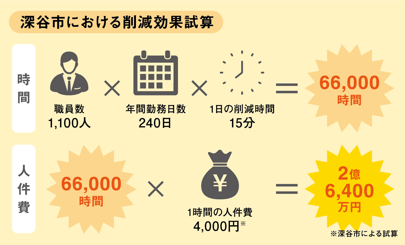LoGoチャットの導入は、コスト面でも効果を生む。1日15分の工数削減が可能になった場合、深谷市の場合では2億6,400万円もの人的コスト削減効果が見込まれるのだ(※上図参照)。これらをふまえ、齋藤さんは次のように語る。「RPAは有用ですが、効果が出るまでに時間がかかる。チャットは導入も簡単で、誰でも利用でき、効果が早く現れる。この両者をうまく併用して業務効率化を進めて行こうと考えています」。