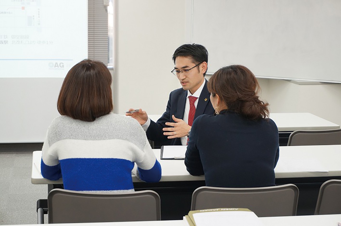 セミナー後には、希望者にだけ一対一の面談を開いている。物件購入は大きな選択でもあるので、深く話し合うことで不安や悩みの解決につなげている。