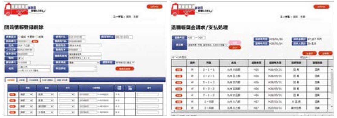 条件から簡単に団員検索できる。表彰条件機能は、表彰条件が分からなくても表彰名で候補者を検索できる。さらに、出動データからは報酬や費用弁償の計算が可能。