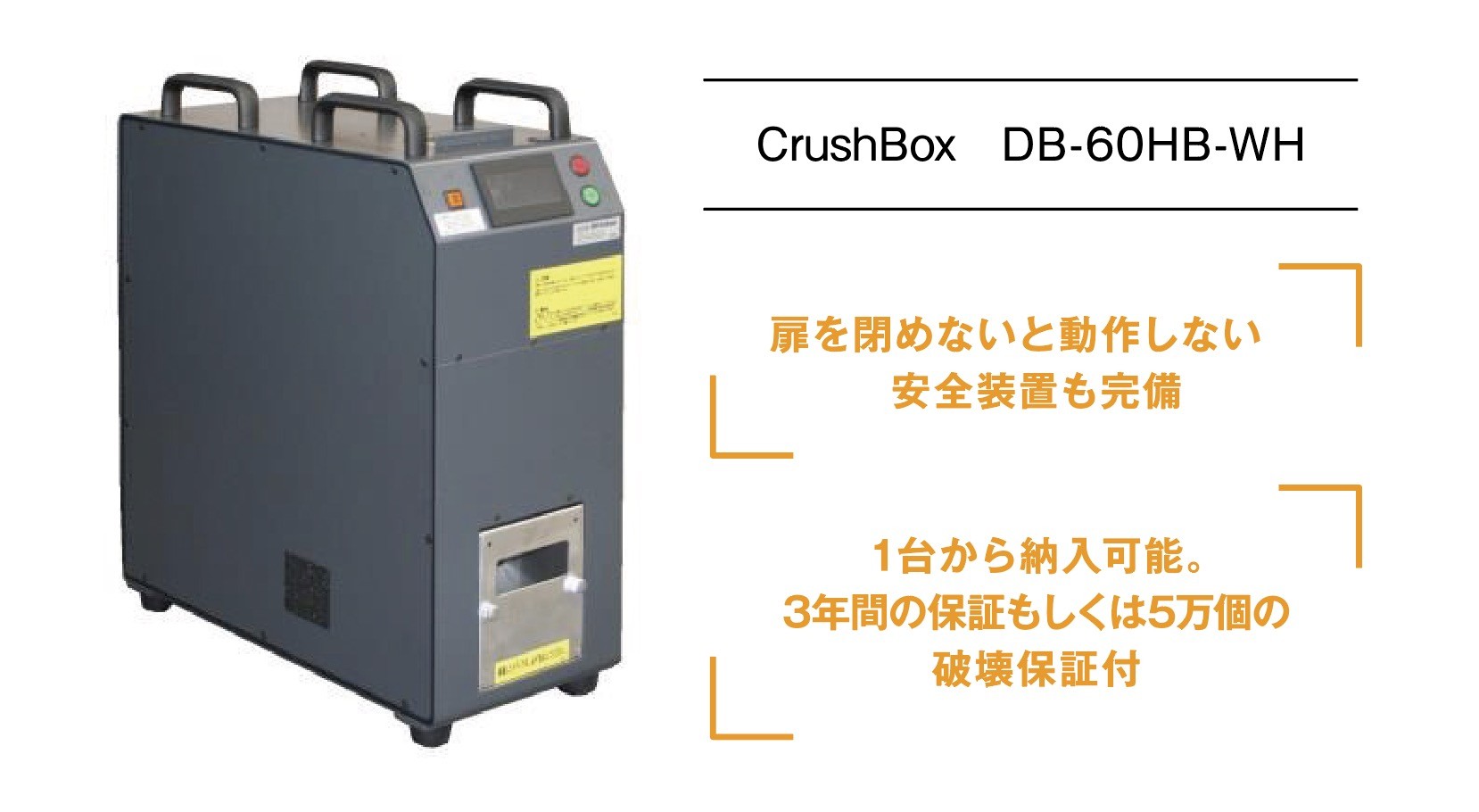 日東造機が平成15(2003)年に販売を開始したHDDの物理破壊機「クラッシュボックス」は、手動式、電動式などデータの重要度に合わせて各種モデルをラインナップ。機密情報を最後まで見守る、自治体や企業の心強い味方だ。