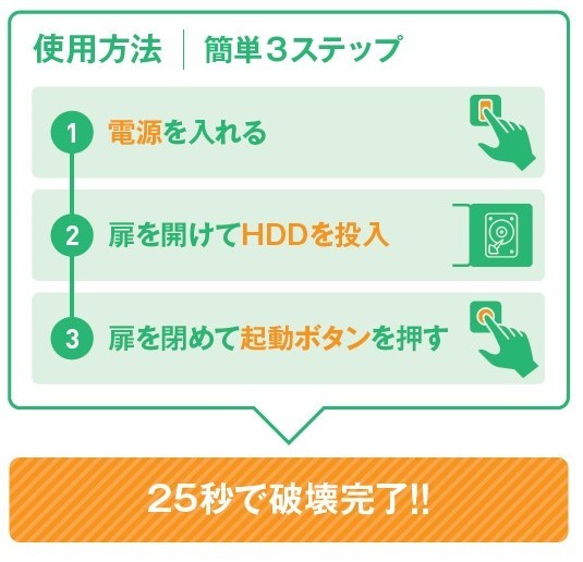 磁気消去+物理破壊のW処理でHDDの完全破壊を実現!