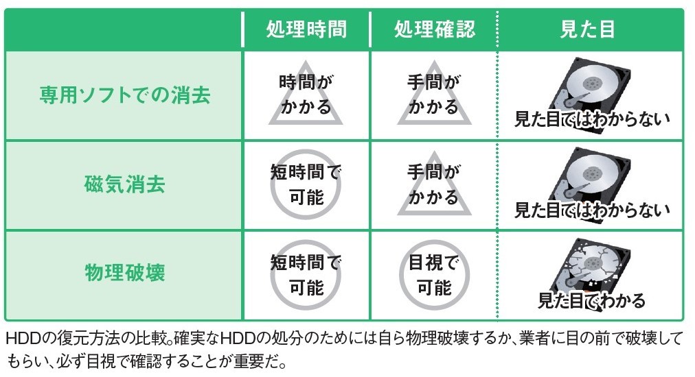 一般的に、HDDのデータを復元不能な状態にする方法は3つある。