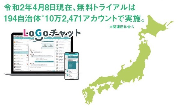 現在、LoGoチャット無料トライアル実施自治体を募集しています。令和2年6月末までのお申し込みに限り令和3年3月末まで利用可能。アカウント数は無制限、部署単位でのスモールスタートも可能です。まずはお問い合わせを。