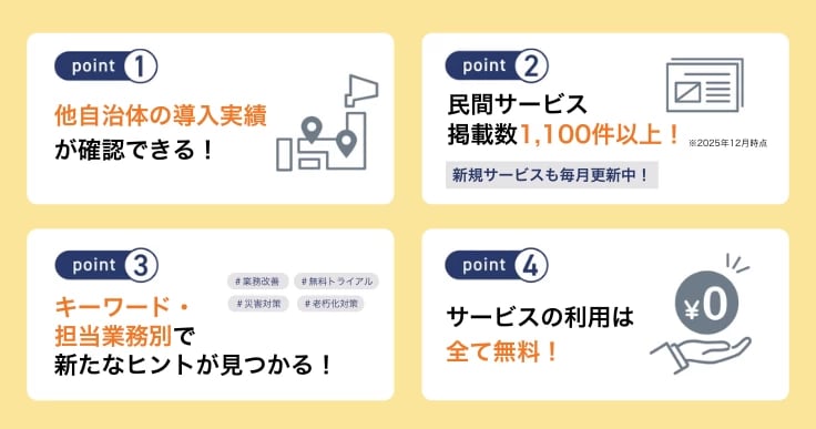✓ 新しく民間サービスの導入を検討しているが、忙しくて検索している暇がない......