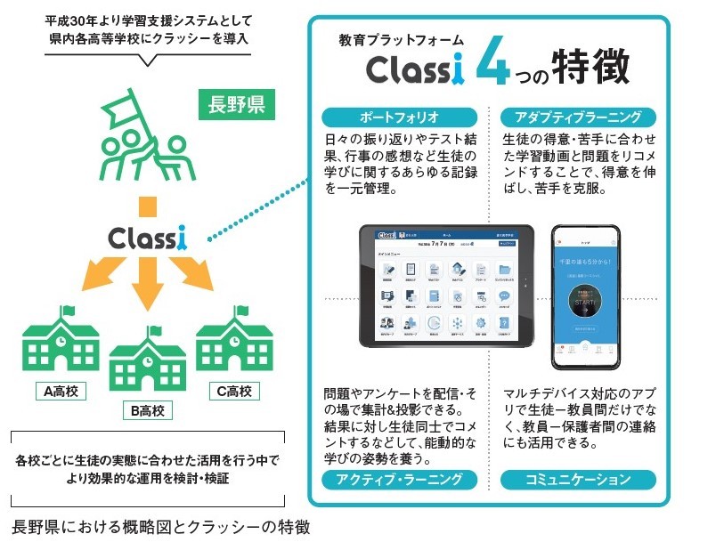 長野県では、文科省のGIGAスクール構想などを追い風に“いつでもどこでも”I CTを使える環境を実現し、より生徒一人ひとりの特性に合った指導方法の確立を目指すという。