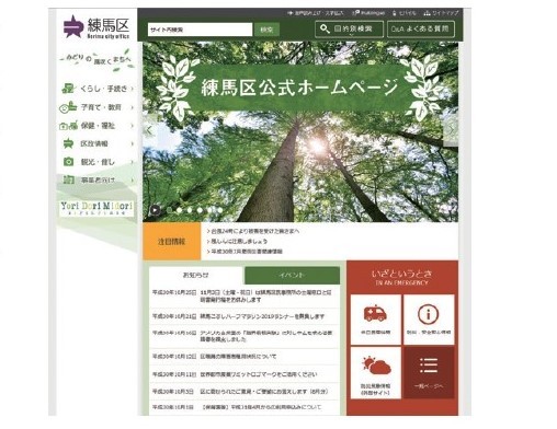 平成30年9月、全面リニューアルによりデザイン・機能ともにホームページを一新。災害によりアクセスが急激に増えても安定的に情報発信を継続できるよう、CDNを導入した。同時に、同区独自のメール配信サービス「ねりま情報メール」と連動させ、災害情報の発信時間短縮を図ったほか、大規模災害時には迅速に切り替えられる災害用トップページも新規制作。