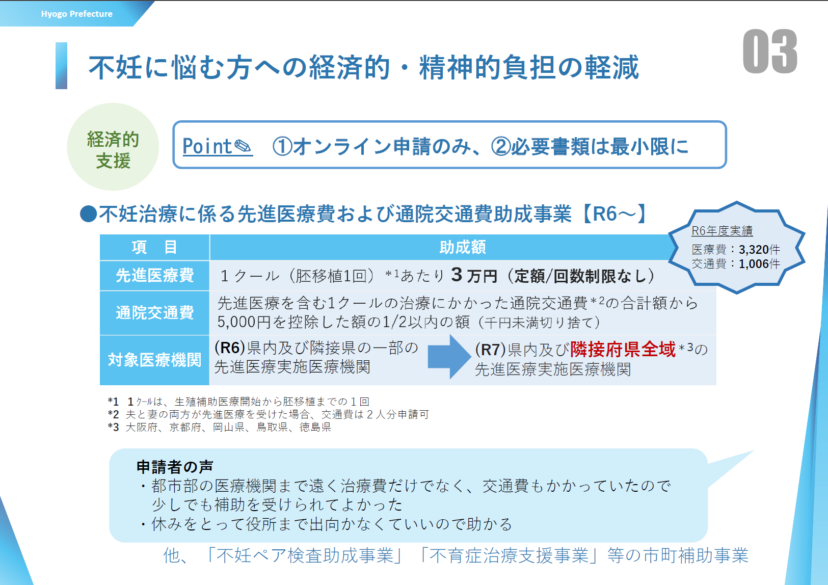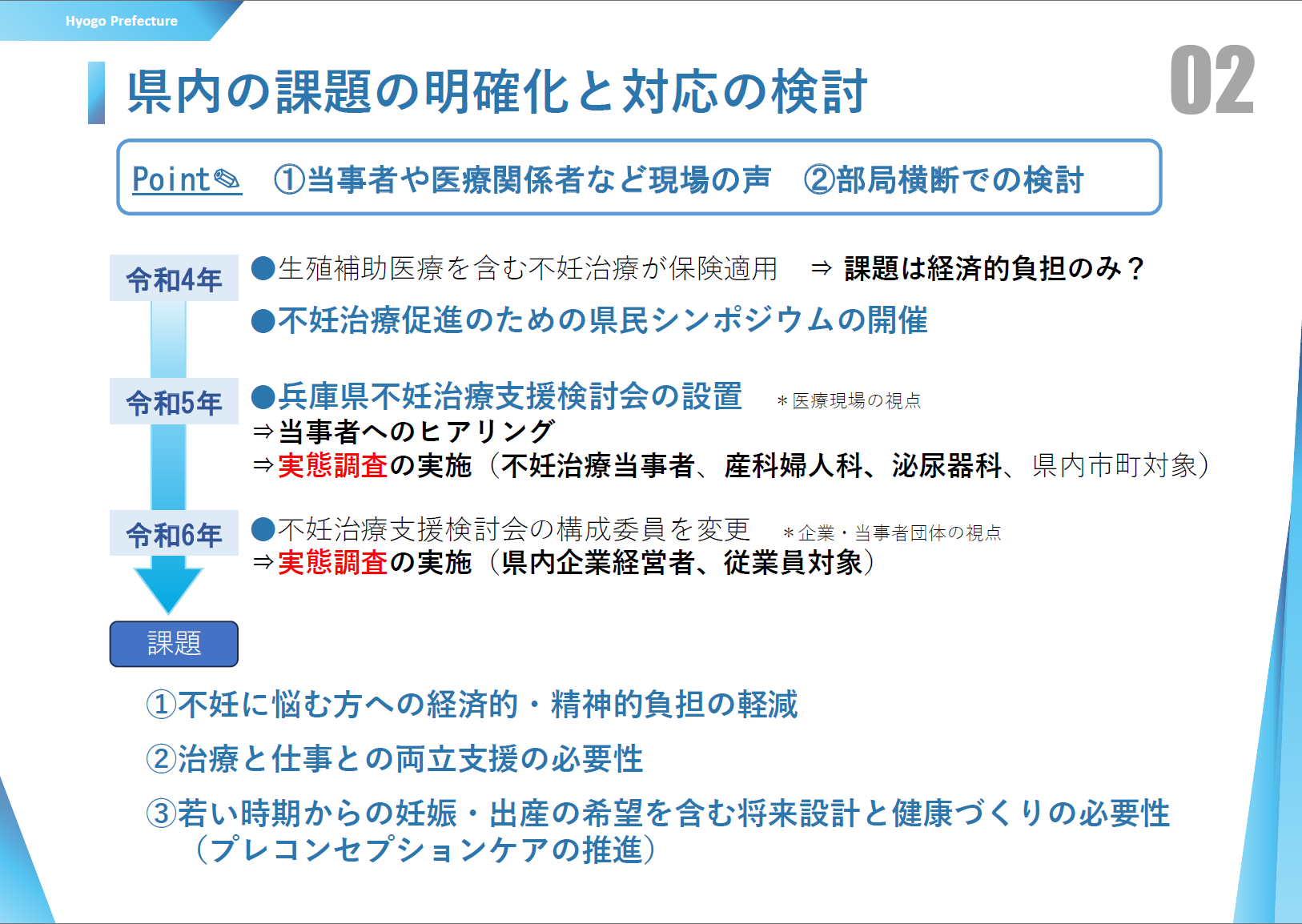 もちろん、妊娠や出産は個人の自由です。しかし「子どもが欲しい」と思っている人がいる限りは、安心して産み育てる環境を整えたいと思い、兵庫県では不妊治療のハードルを下げる取り組みに力を入れています。