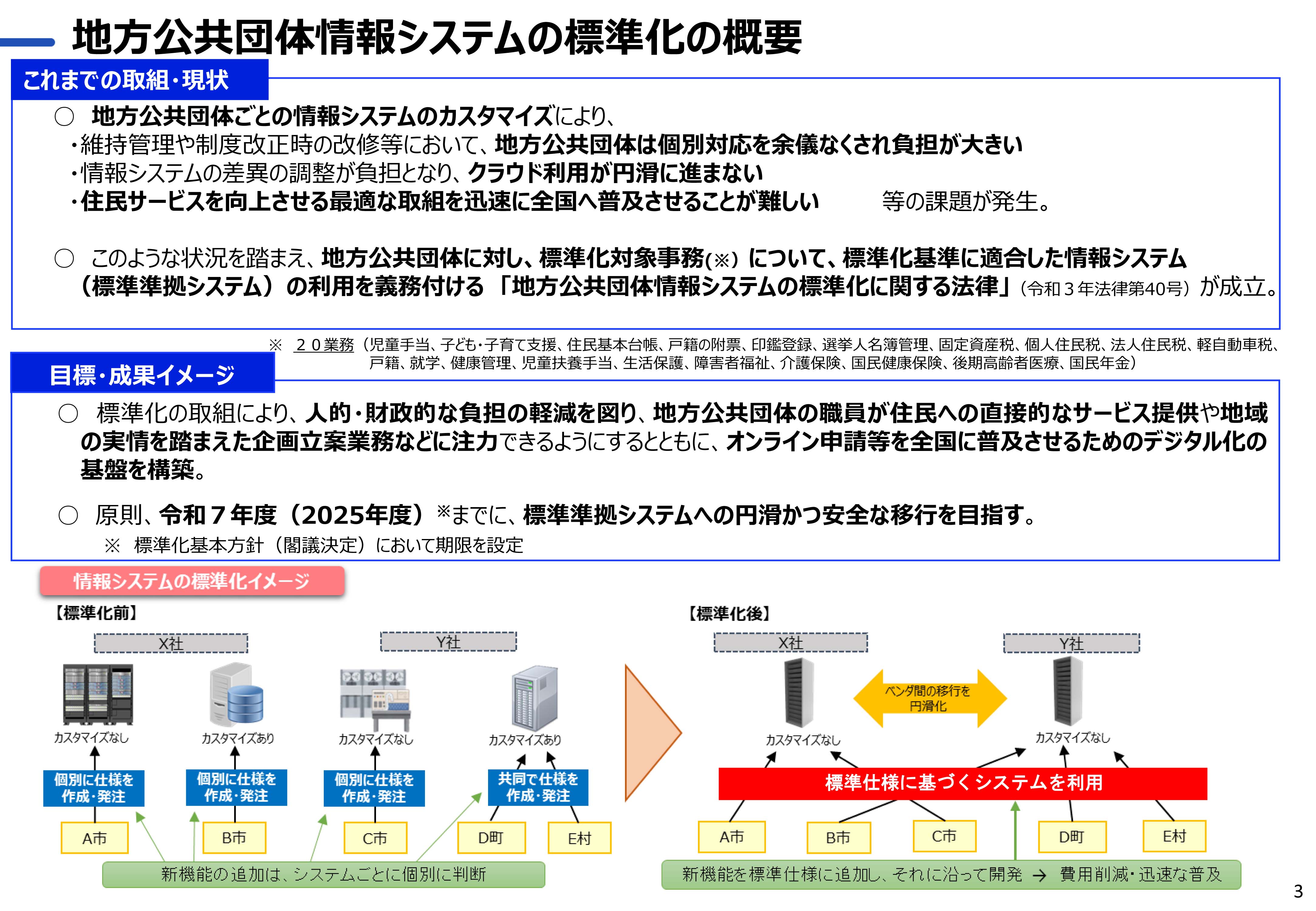 私からは、自治体の基幹業務システムの統一・標準化について、直近のできごとを中心にお伝えします。