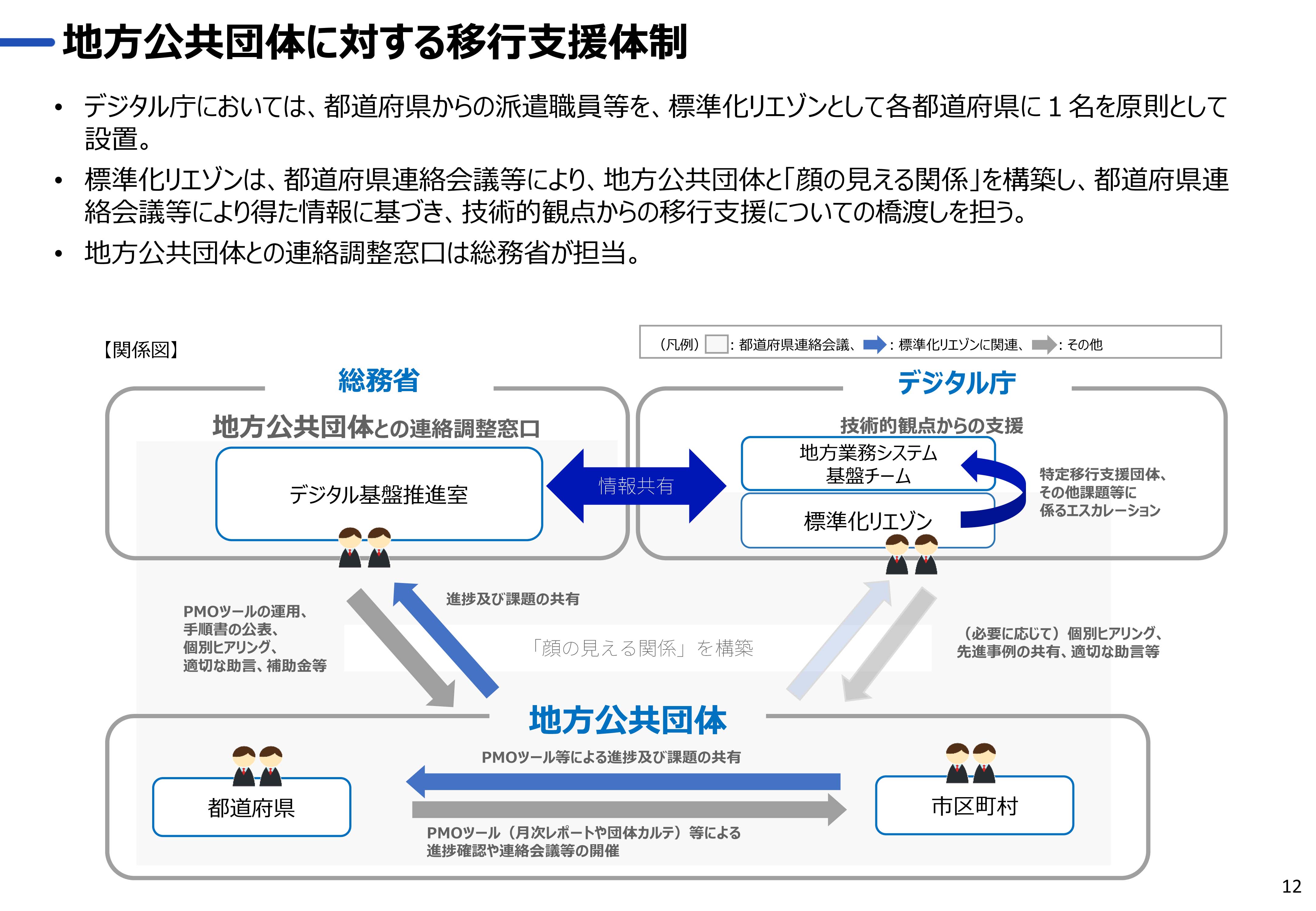 標準化を進めるにあたっては、移行支援をしています。基本的に自治体の窓口は総務省で、デジ庁は総務省と連携し、主に技術的支援に注力。自治体だけでなくベンダーからのヒアリングをすることもあります。