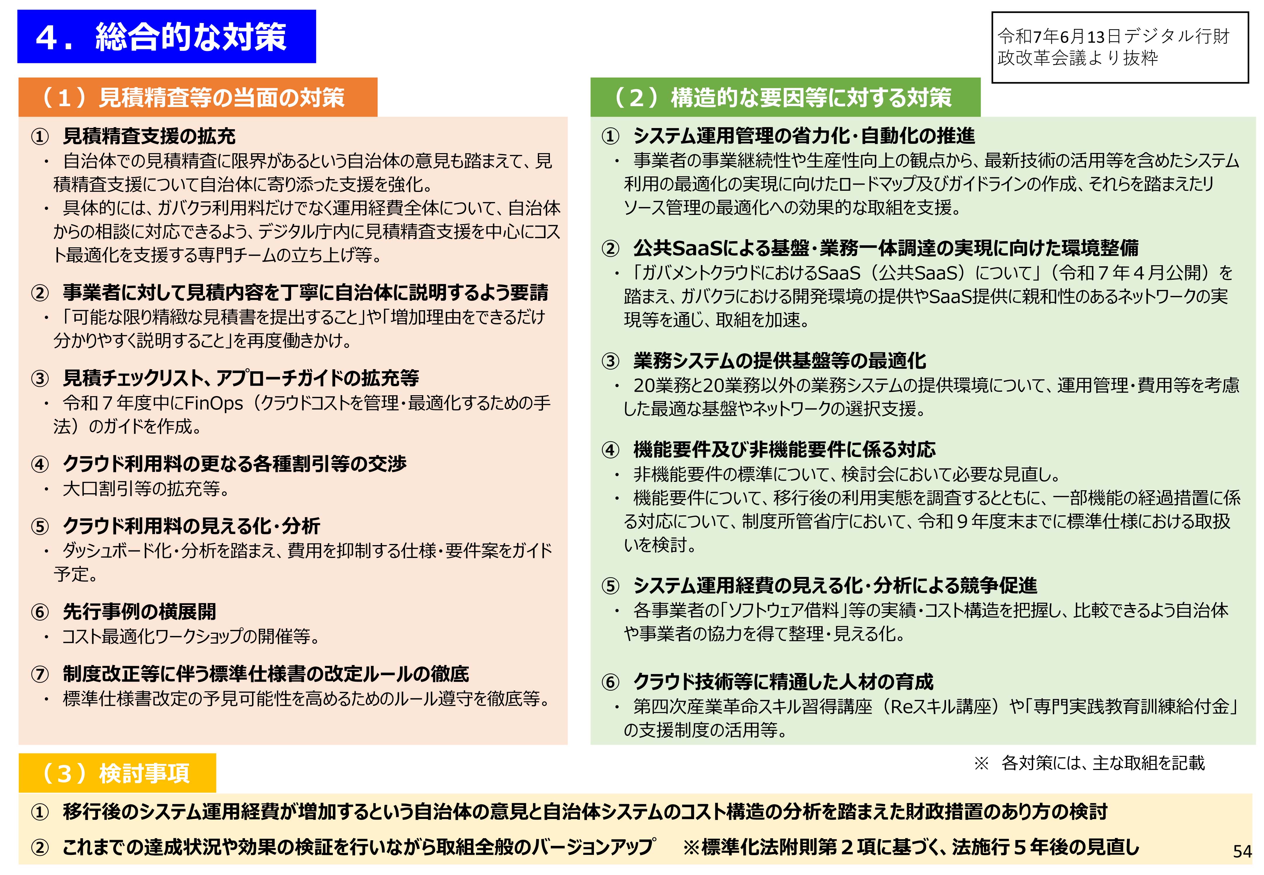 総合的な対策の中ではこうした形で国や都道府県、市区町村だけでなく、事業者にも期待される取り組みを示しています。こちらは6月13日のデジタル行財政改革会議の資料に詳しく記載されています。