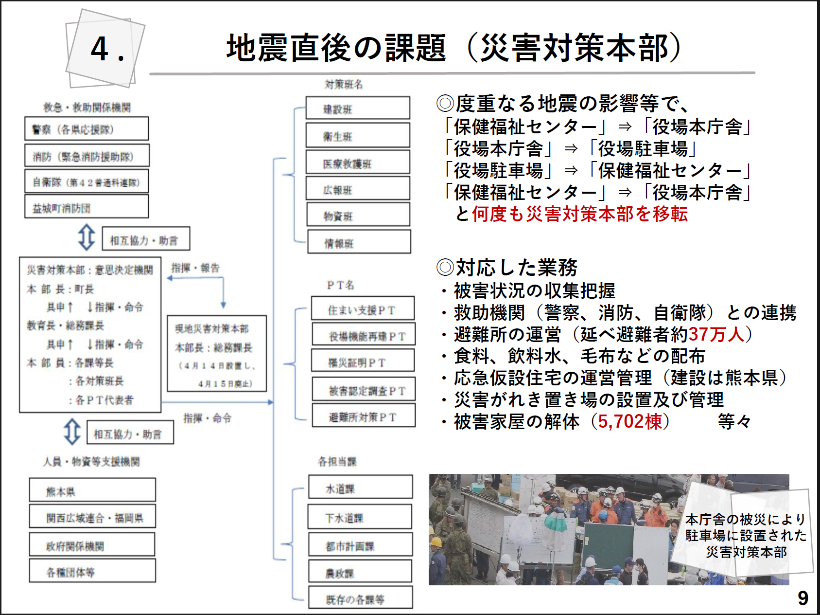 地震直後、災害対策本部の課題