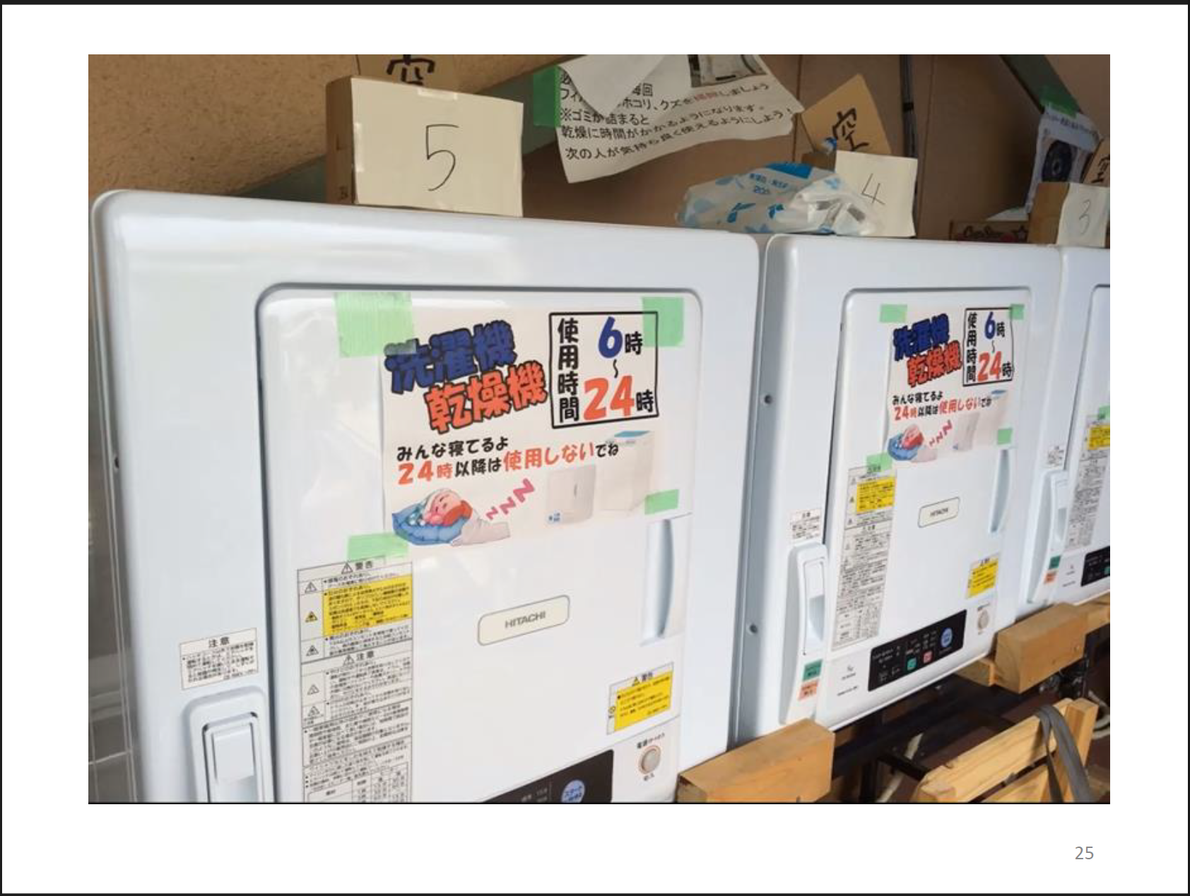 避難所生活が長期化していたので、この頃には洗濯機や乾燥機なども用意しました。また、乾燥機の使用時間や消灯時間をどうするかといったルールは、避難所の方々と細かくコミュニケーションをとって設定していきました。