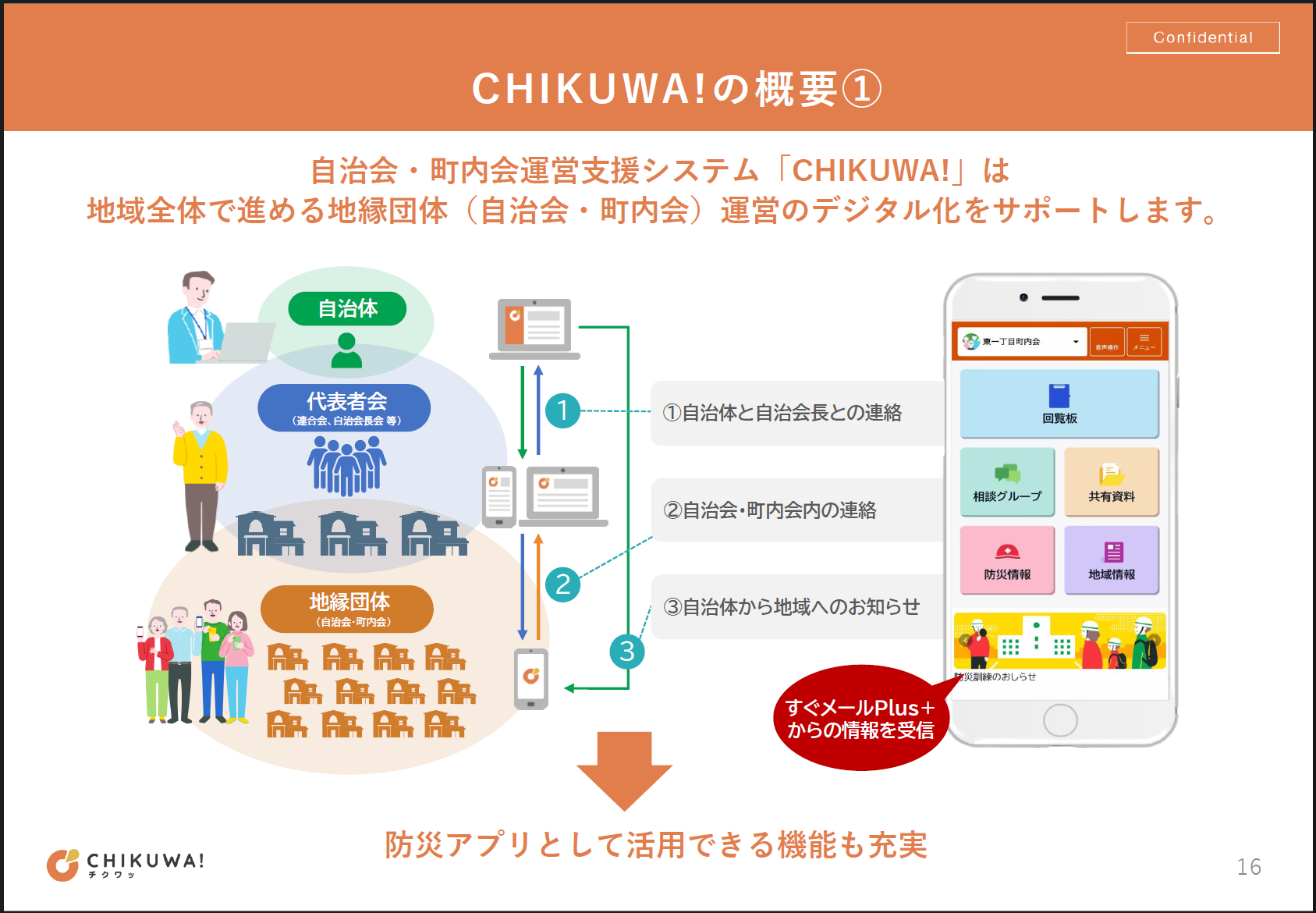 「CHIKUWA!」は自治体や町内会における連絡を地域全体でデジタル化する運営支援システムです。