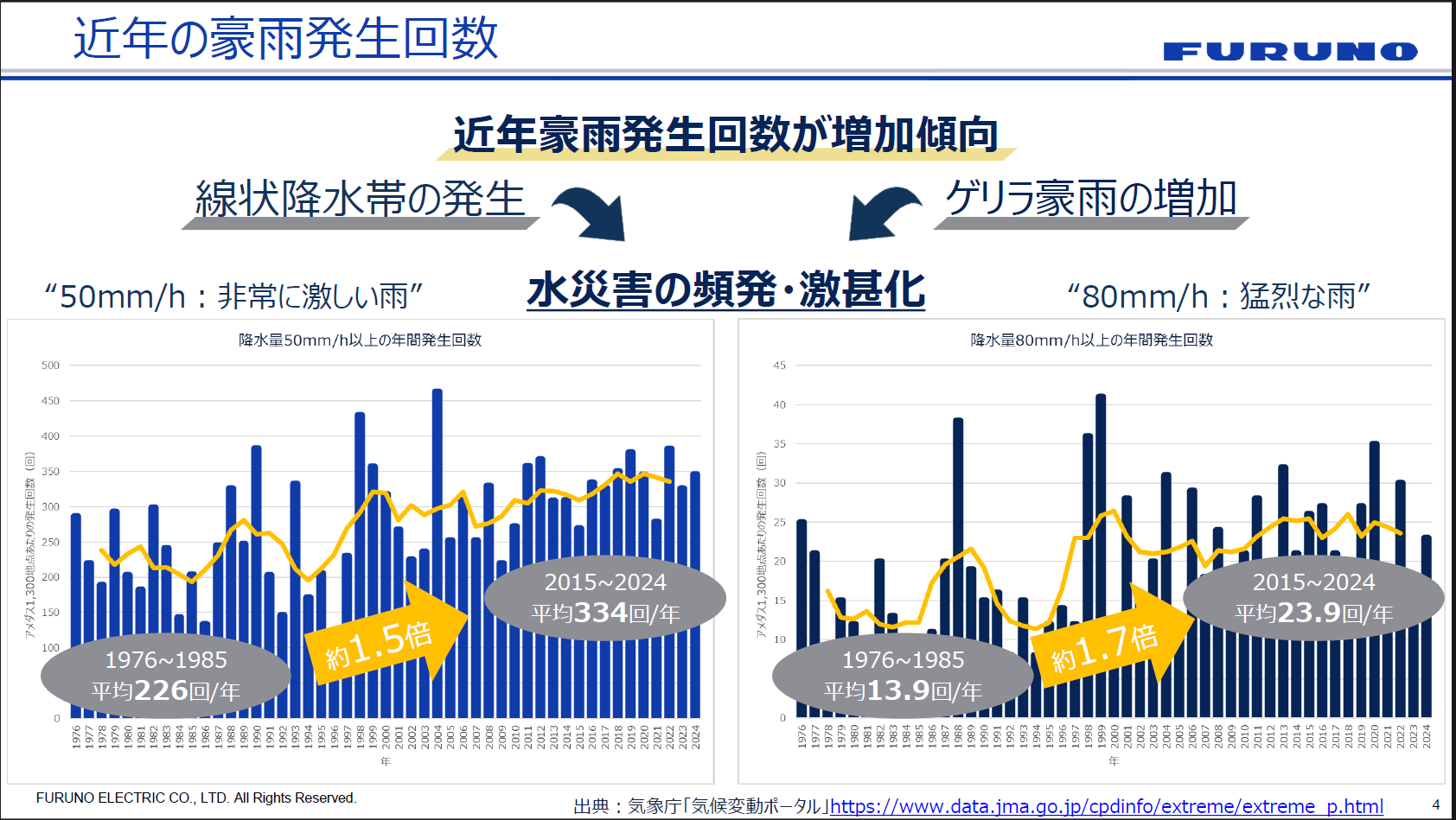 近年の豪雨発生回数