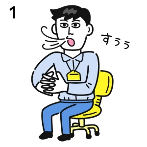 休憩時はもちろん、上司が席を外しているわずかな時間など、隣の同僚からの視線はスルーして心身をそっと整える。
