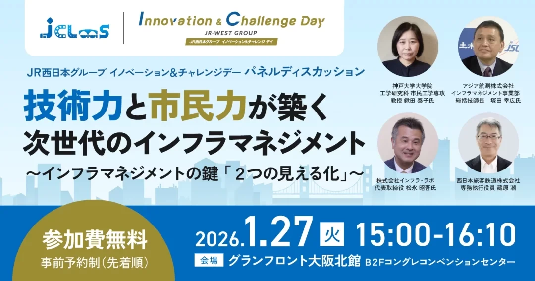 JCLaaSの中核を担うJR西日本グループは、長年の鉄道事業を通じて鉄道インフラの安全性・効率性・費用対効果を高めてきた。この知見を公共インフラの領域にも展開し、個別の最適化にとどまらない“全体最適”の実現を目指している。