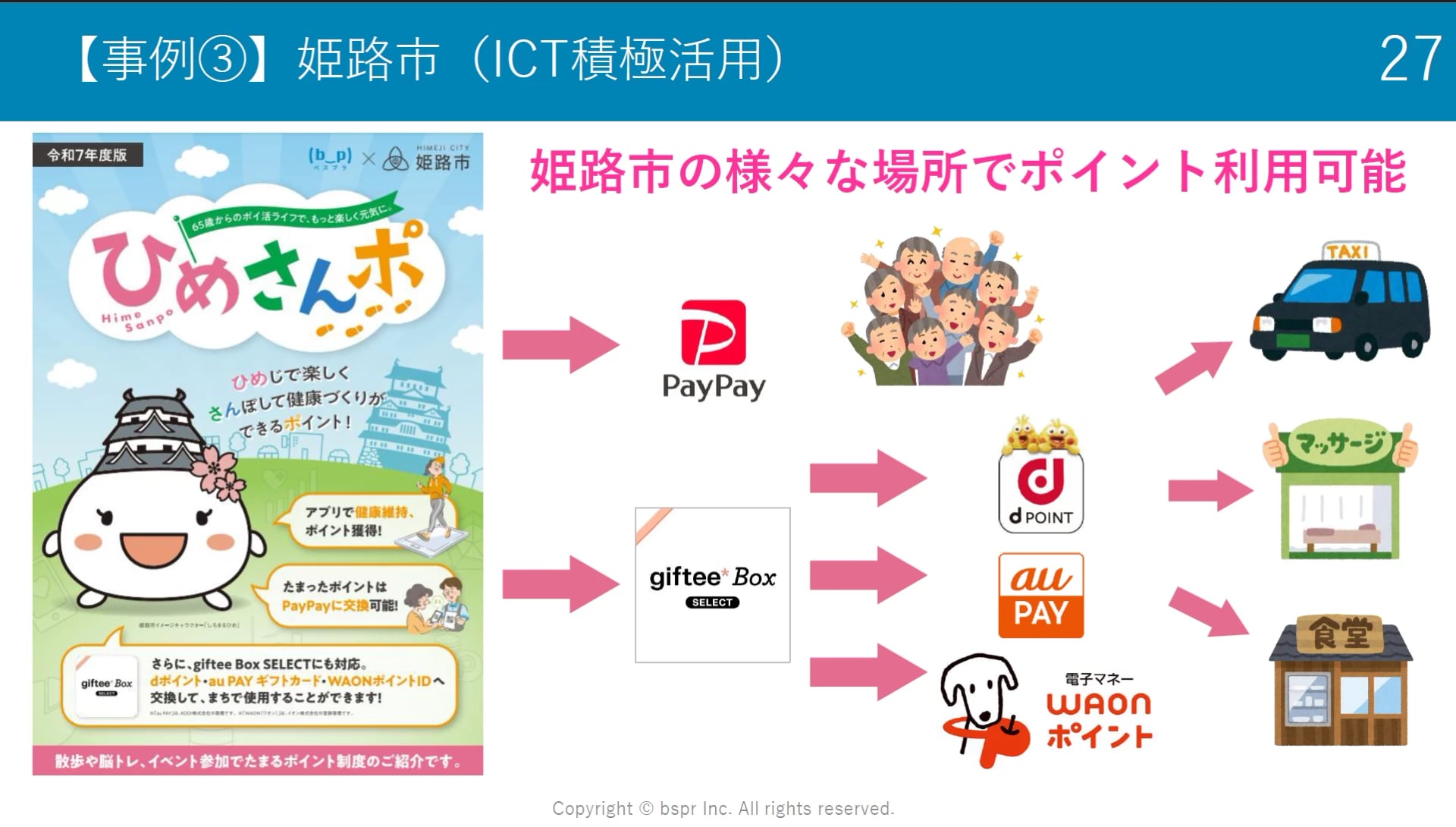 姫路市はICTを積極的に活用し、PayPayやdポイントなど複数のキャッシュレスサービスと連携しています。貯めたポイントは様々な場所・サービスで利用できるため、市民の満足度も非常に高いようです。イベントやボランティア活動にもICTを取り入れ、多様な場面で健康活動を促進しています。