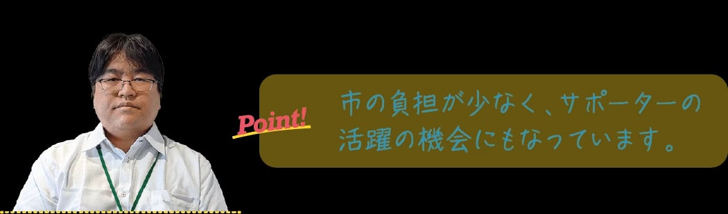 令和5年度に始まった取り組みで、令和6年度には35回開催し、431人が参加。サポーターは37人で、”やりがいにつながっている“という声が上がる。体への負担が少ないことから女性サポーターから好評で、取り組みをきっかけにセンターの登録者が増えている。川道さんは確かな手応えとともに、「年100回の開催を目標に、活動の場を広げていきます」と展望を語る。