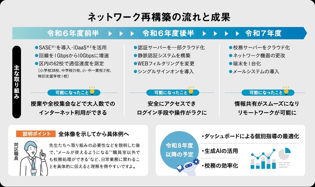令和元年のGIGAスクール構想により進められてきた教育のデジタル化。その見直しにいち早く着手したのが杉並区だ。従来のネットワークを再構築し、学びを支える基盤と、教職員にとって働きやすい環境の整備に取り組んでいるという。