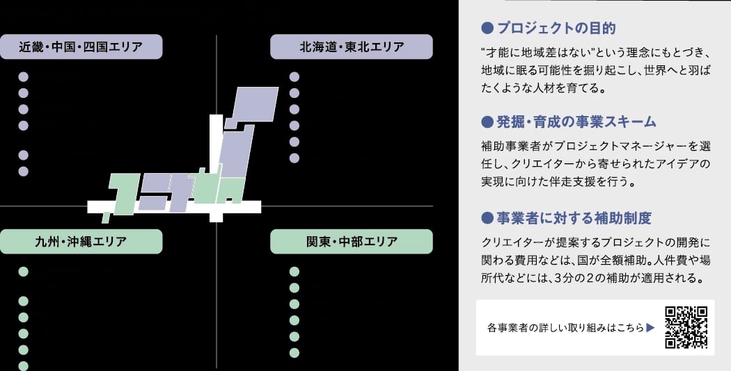 地方の若者に起業支援などを行う事業者に向けた、経済産業省の補助事業。全国に事業者が点在しており、自治体にも参加の可能性が広がっている。