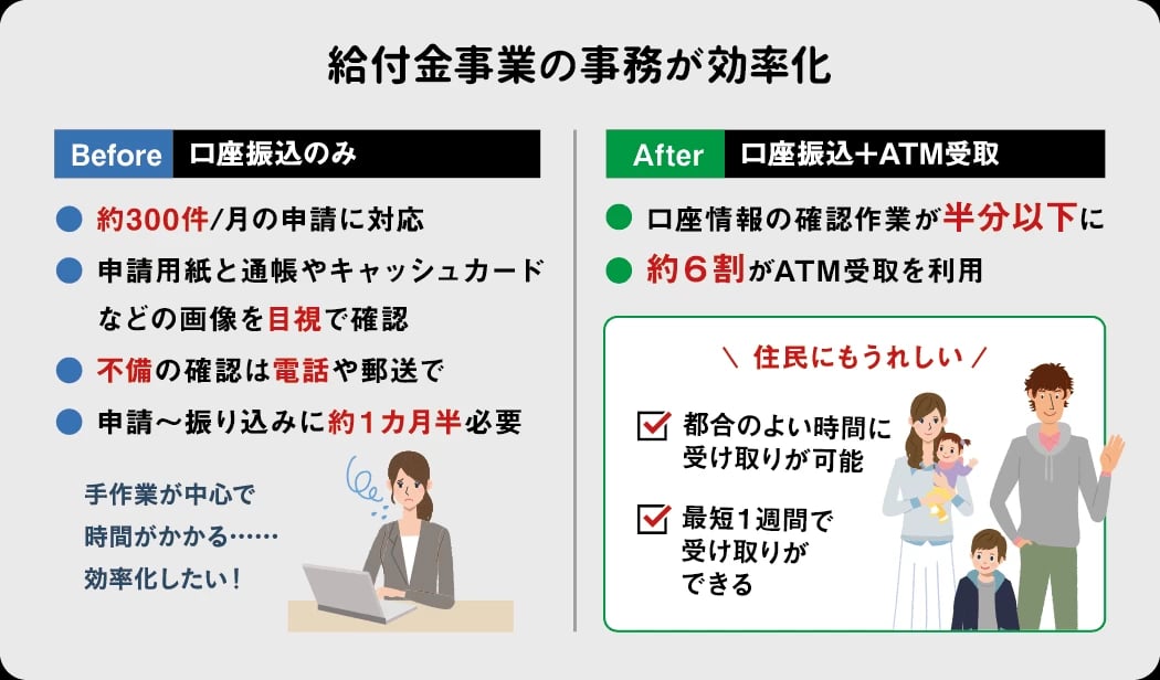 住民が好きなときに受け取れる、ATMを活用した支給方法へ。