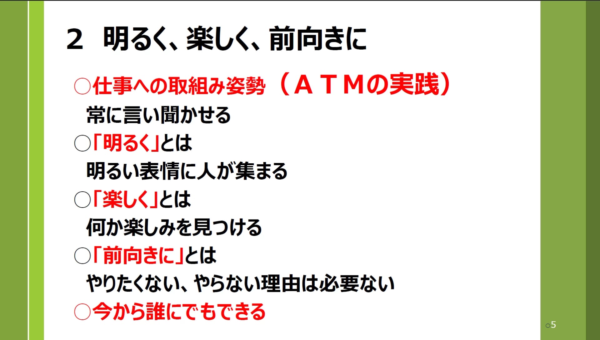 そして、仕事への取り組み姿勢は、ぜひ「明るく、楽しく、前向きに」を実践してください。