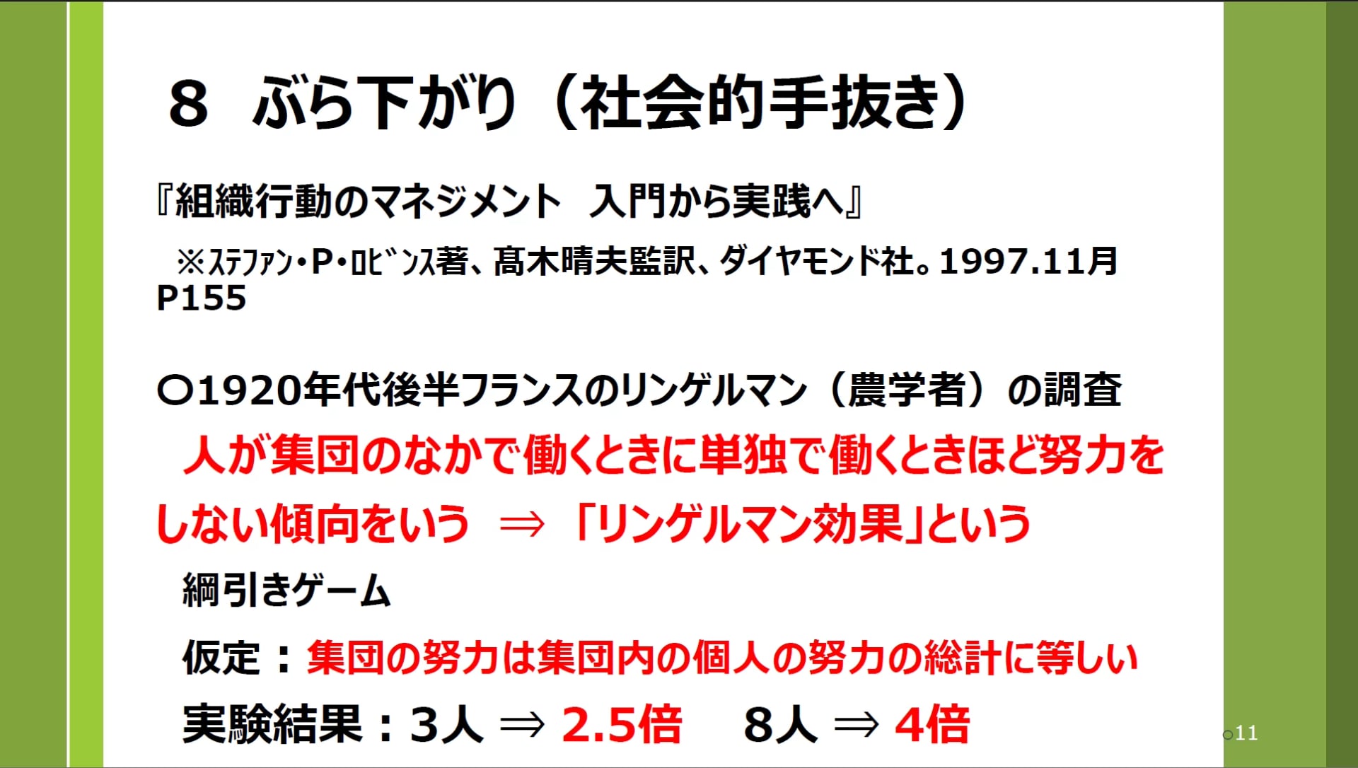 人は集団になると、単独のときほど努力をしなくなります。これを「リンゲルマン効果」と呼びます。