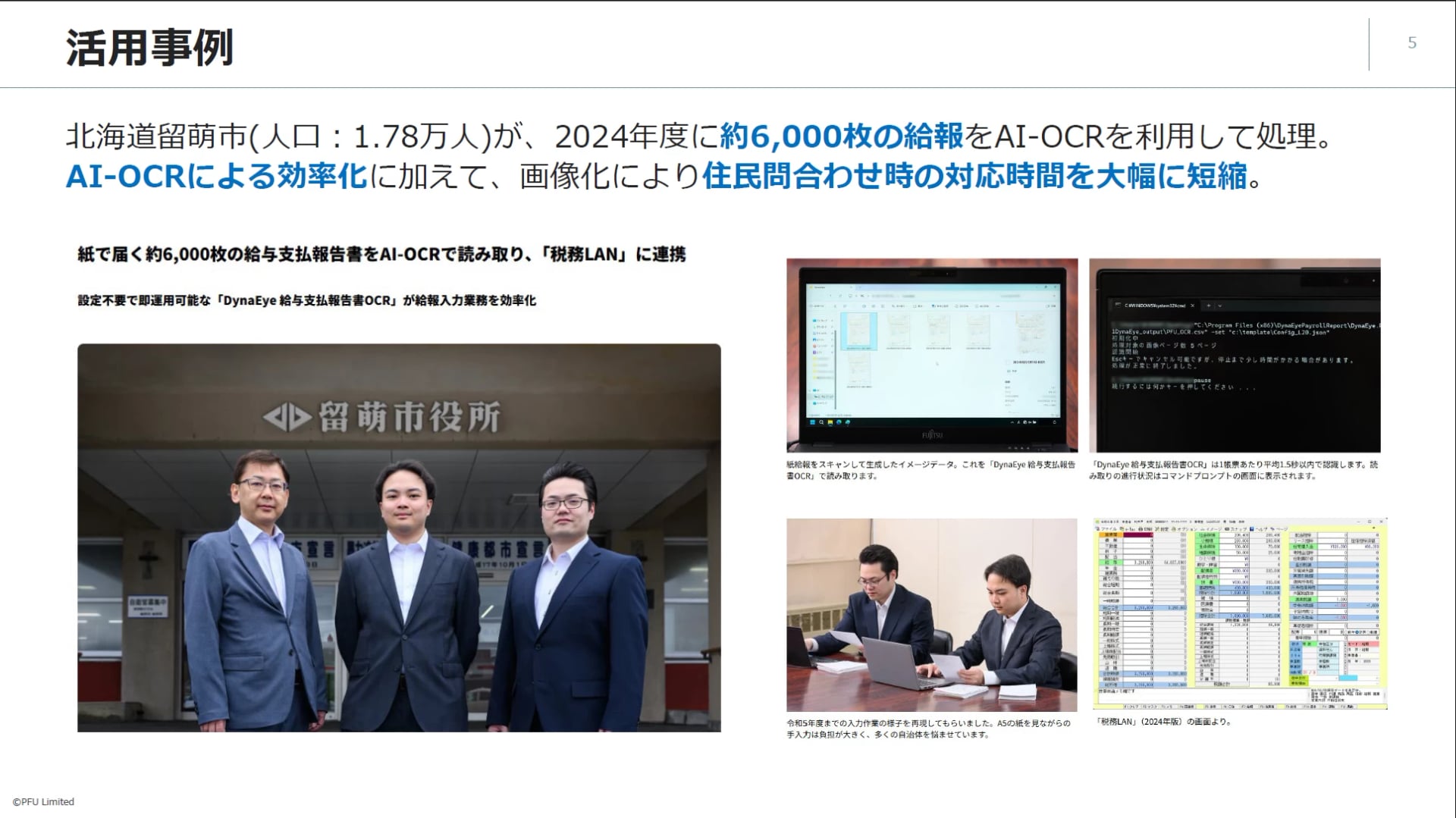 令和6年、北海道の留萌市では約6000枚の給与支払報告書を弊社のAI-OCRを使って処理することで非常に大きな効率化を実現しています。