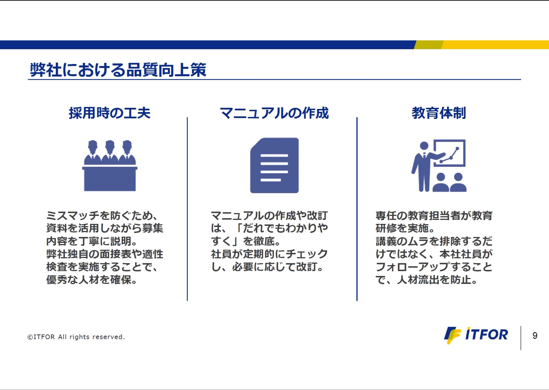 品質向上のための3つの施策