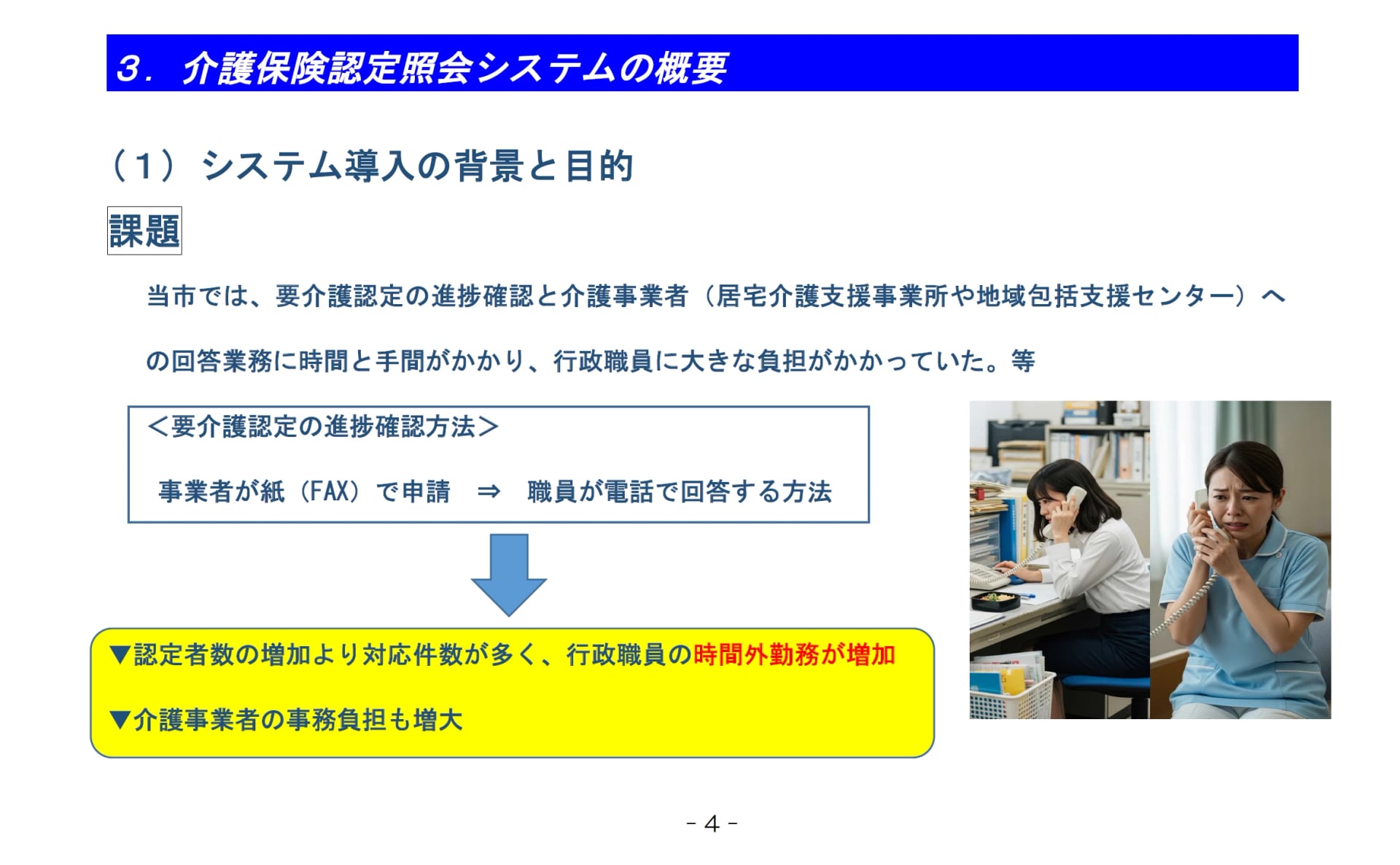 「認定審査会の資料づくりに時間がかかる」「電話やFAX対応が多く、本来業務に集中できない」「多機関連携や調整に追われている」ーー介護保険担当でよくあるこうした悩みに対し、他自治体ではどのような工夫をしているのでしょうか。
