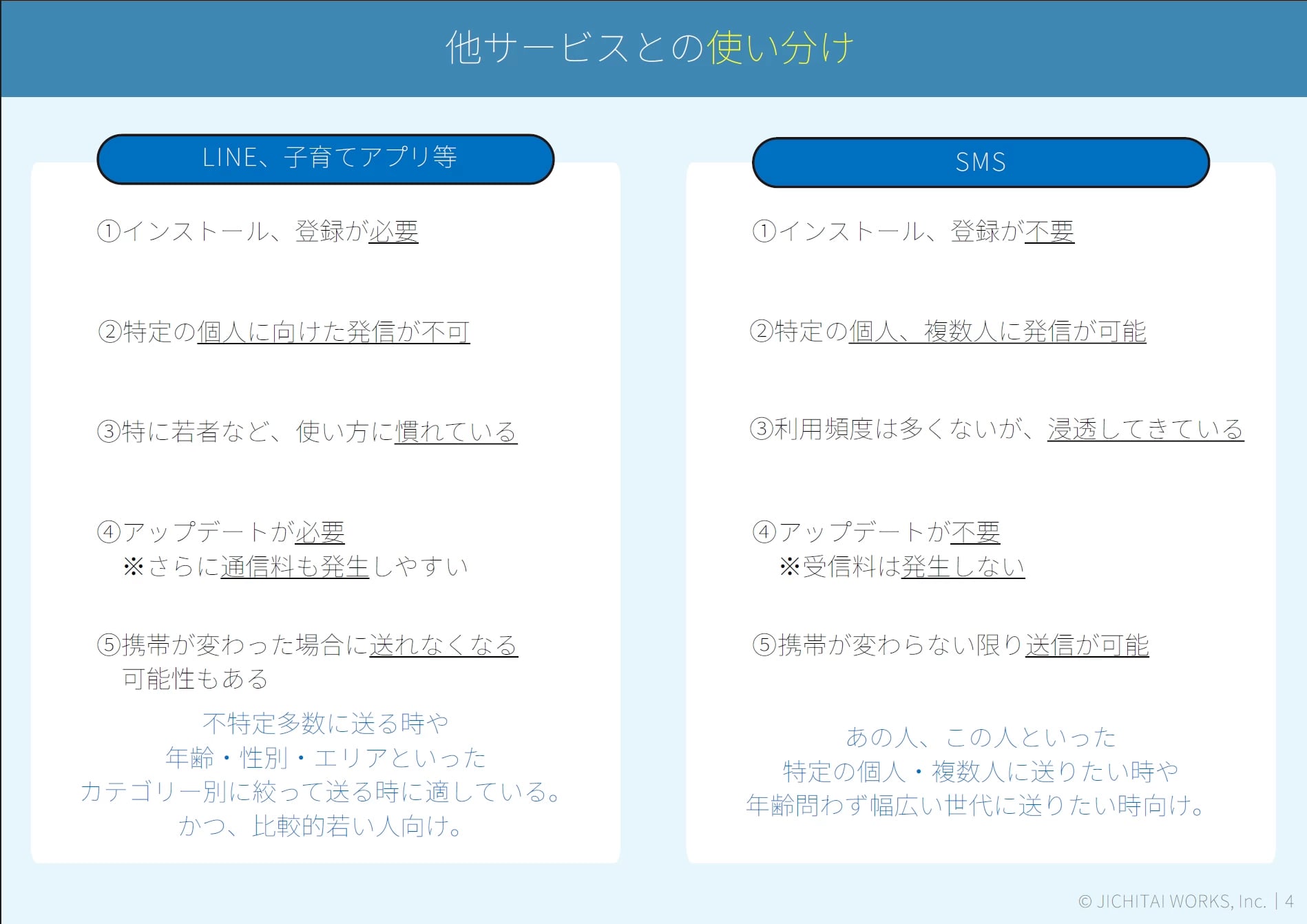「実際にどんな業務で使えるのか」という点が気になるところだと思いますが、これまで郵送や電話で行っていた業務であれば、ほぼ全てSMSに置き換え可能です。