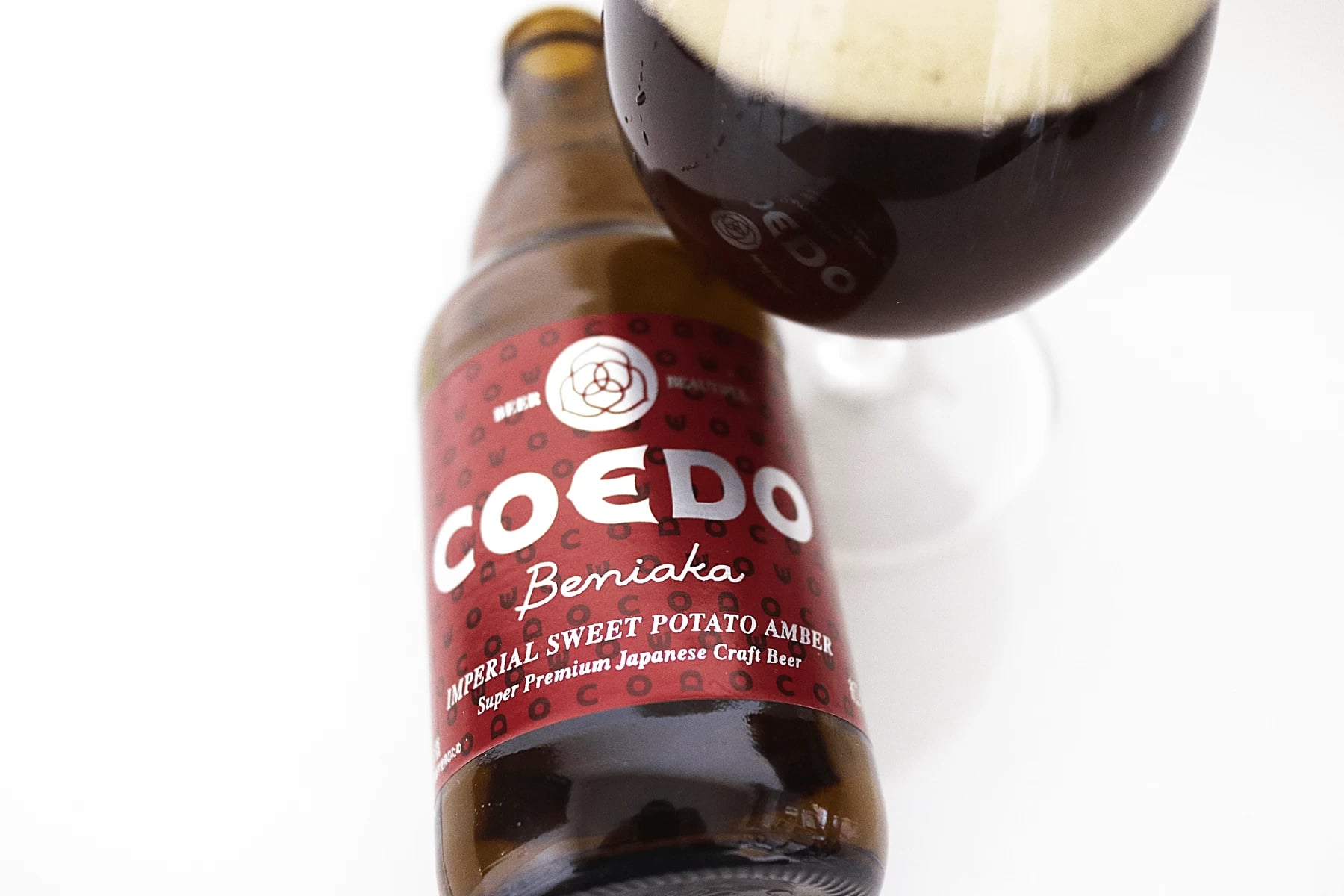 コエドブルワリーは、「COEDO 毬花-Marihana-」「COEDO 瑠璃-Ruri-」「COEDO 白-Shiro-」「COEDO 伽羅-Kyara-」「COEDO 漆黒-Shikkoku-」「COEDO 紅赤-Beniaka-」の6種類の定番ビールと、様々な限定ビールをつくっています。この定番ビールのひとつである「COEDO 紅赤-Beniaka-」が、サツマイモを副原料として使用しているビールです(酒税法上は発泡酒)。