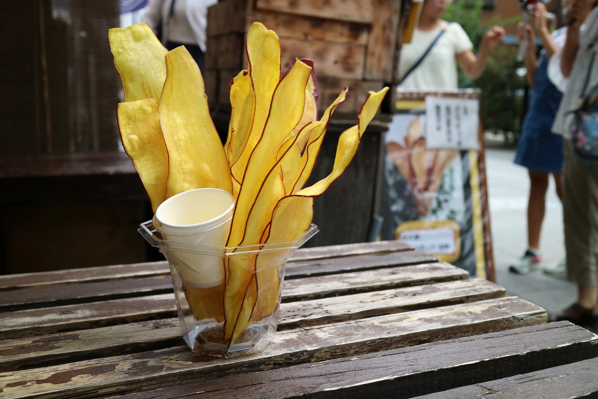 現在でも川越ではサツマイモが特産品で、町中ではサツマイモを使ったスイーツなどが売られています。蔵造りの町並みを散策しながら、サツマイモスイーツを食べ歩きする人たちもよく見られます。