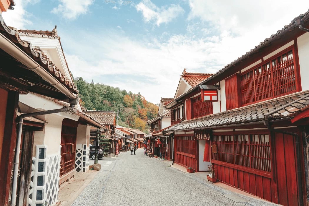 ベンガラ色のまち並みが続く「吹屋ふるさと村」。