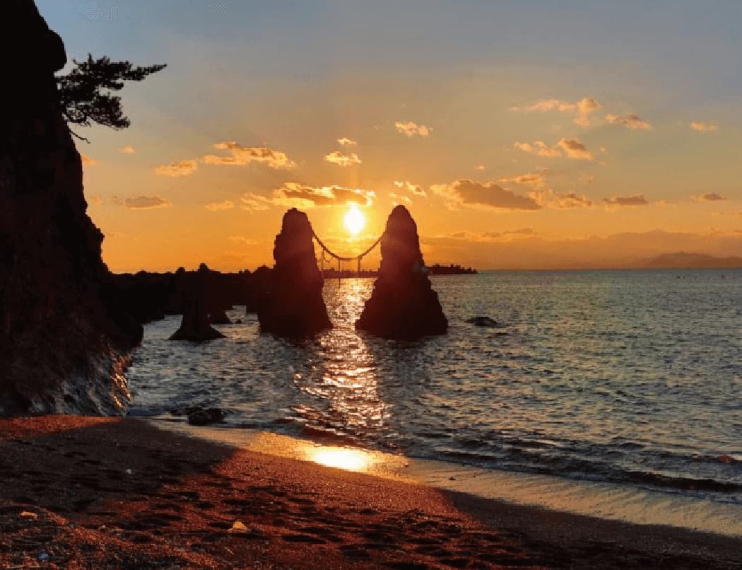 高さがほぼ同じ、男女同権型の珍しい夫婦岩。
