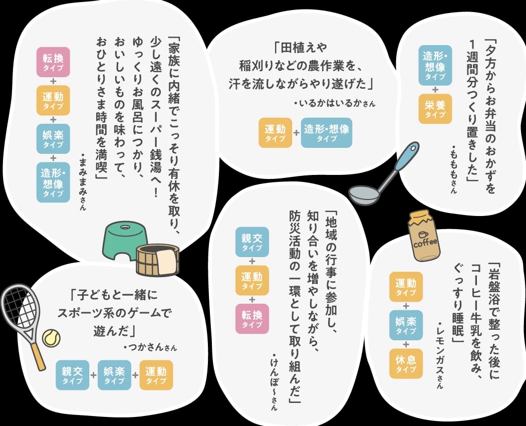 アンケートでは、複数の休養タイプを自然に組み合わせている人も多く見られた。自分に合った休養スタイルを見つけて、心と体をリフレッシュしよう。