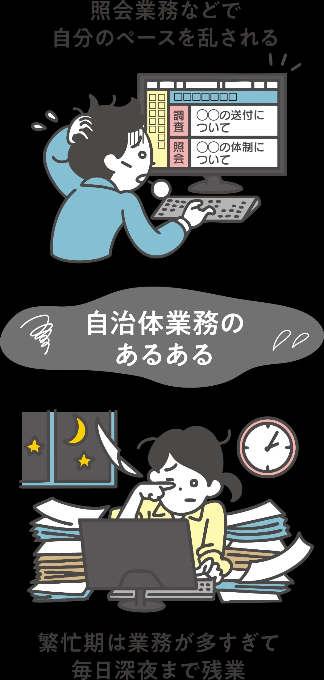 人がストレスを感じる要因の一つに、自分のペースを乱されることがあります。自治体職員の仕事は割り込み業務が多く、計画通りに進めにくいのが現実ですよね。するとストレスがたまりつづけて慢性的な疲労へとつながり、集中力低下、ミスの増加など、組織にとって大きな損失を招きます。