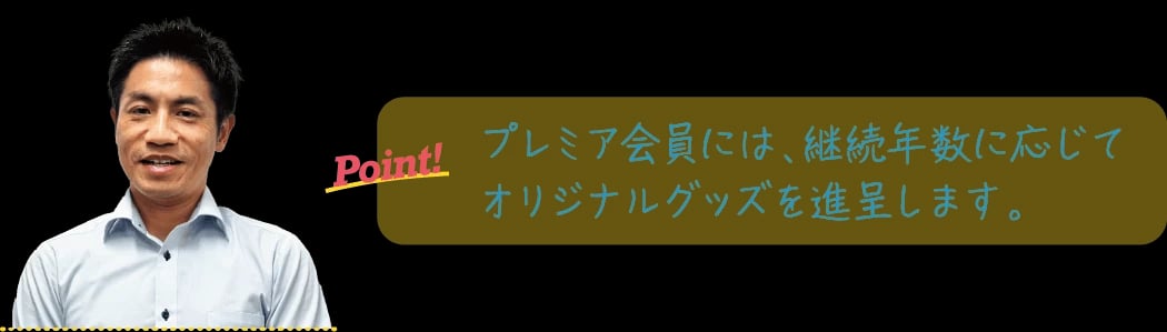 ▲草野球大会の様子(左)と、プレミア会員1年目にプレゼントされるオリジナルピンズ(右)。